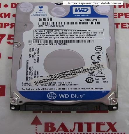 Характеристики жесткого диска WD5000LPVT: